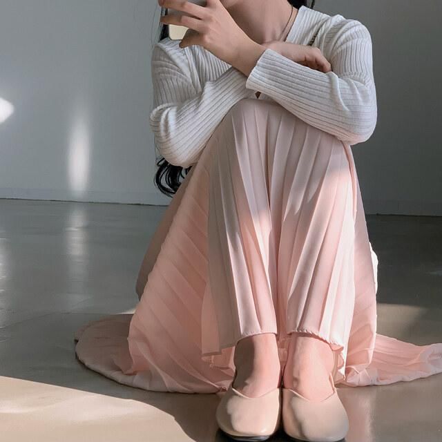 Elastic Waist Plain Accordion Pleated Midi A-Line Skirt