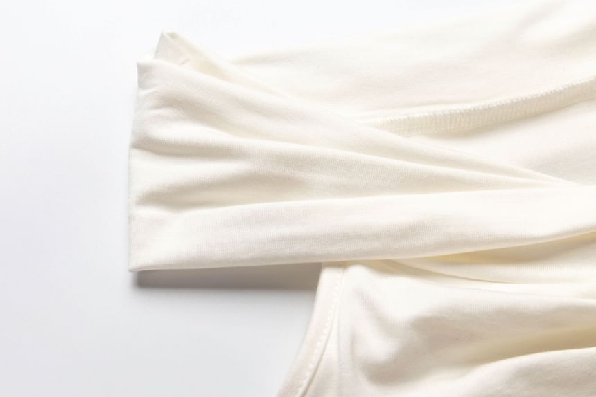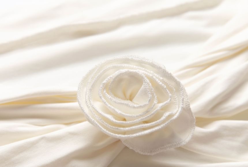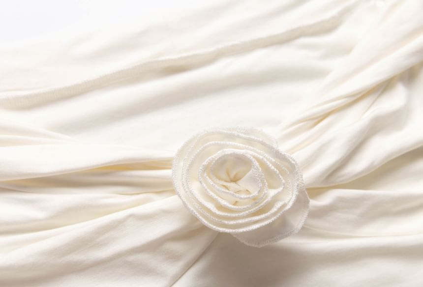 Floral Accent Slim Ruched Off-Shoulder Top Plain Short-Sleeve Crop Fit