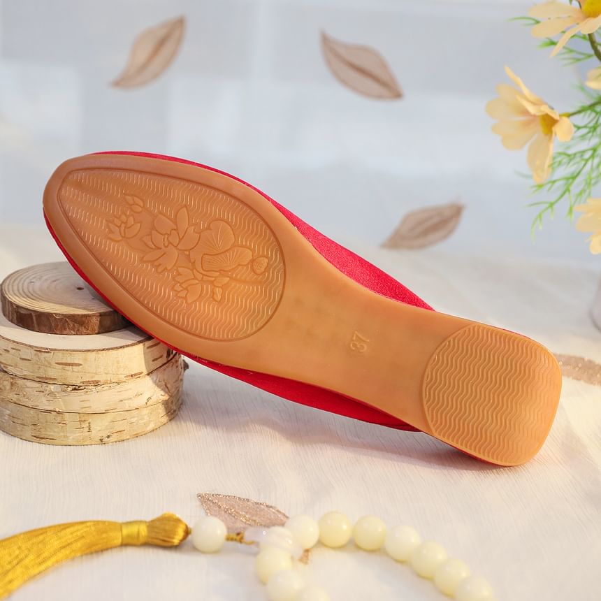 Floral Embroidered Faux Pearl Mules