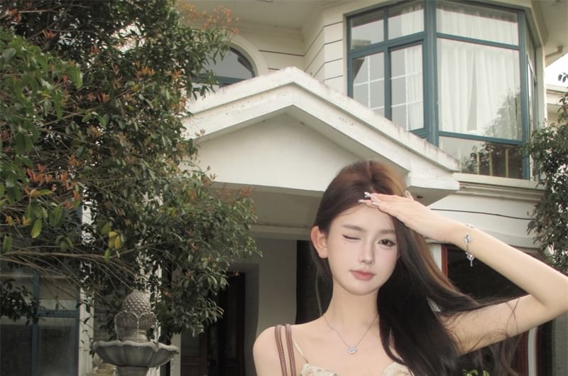 Floral Print Ruffled Bow Camisole Top