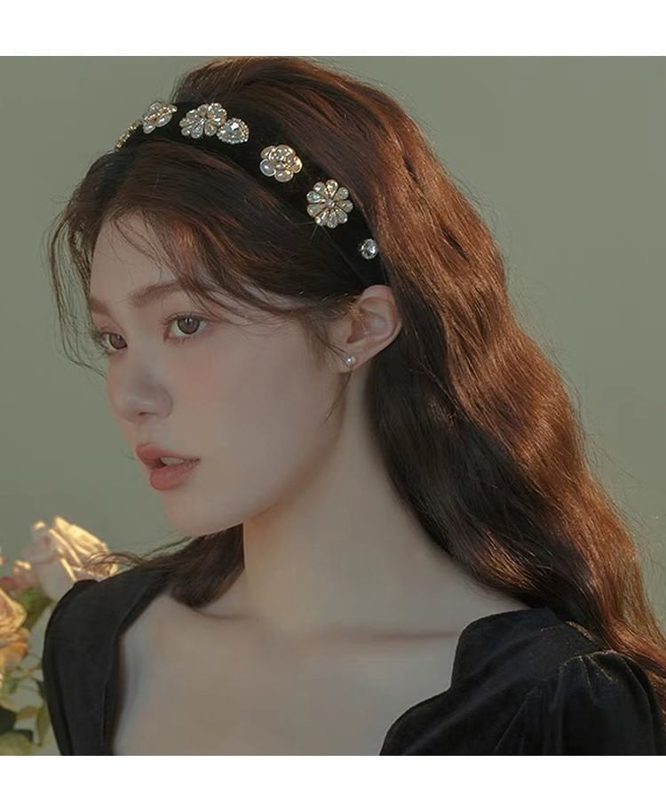 Flower Gemstones Rhinestone Hair Band