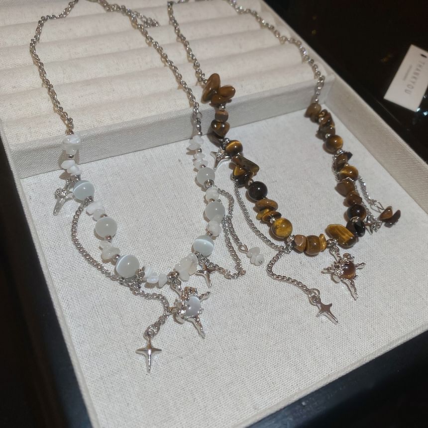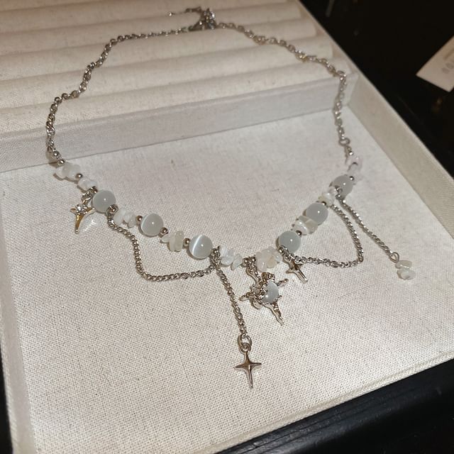 Faux Gemstone Bead Star Pendant Alloy Choker (Various Designs)