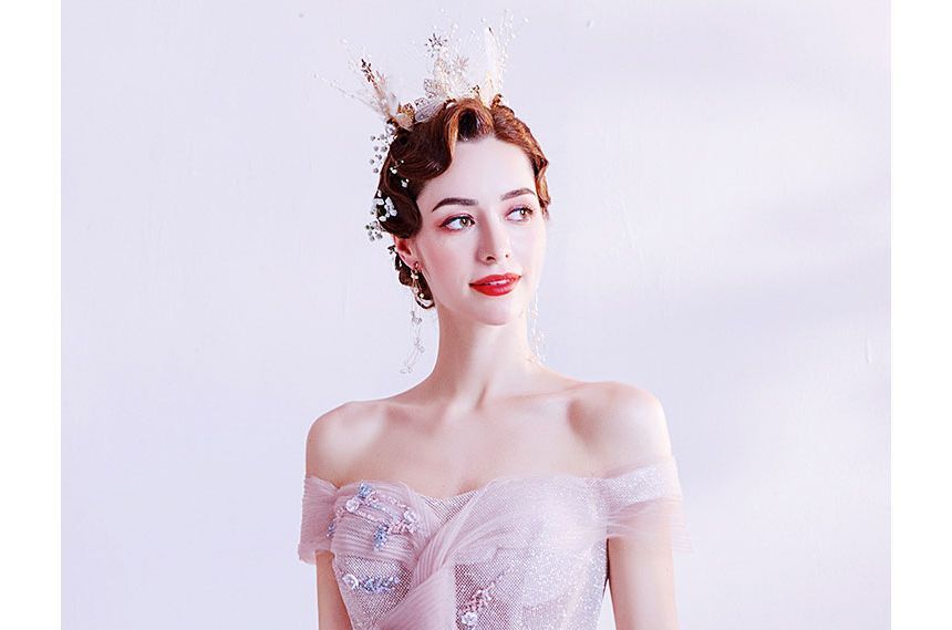 Glitter Floral A-Line Gown Evening Off-Shoulder