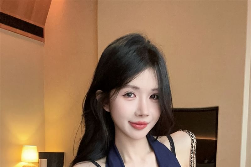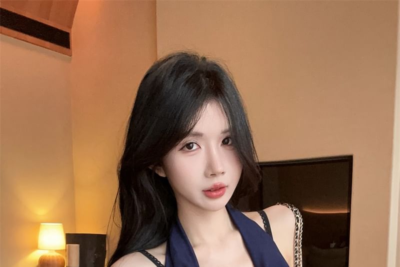 Halter Cowl Neck Plain Top / V-Neck Plain Panel Lace Camisole Top