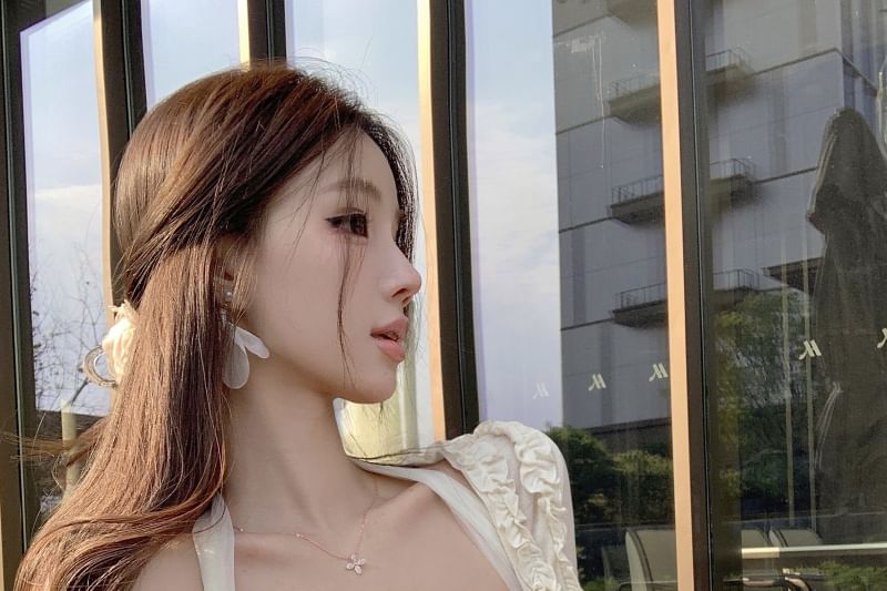Halter Plain Lace Trim Top / Plain Ruffle Bolero