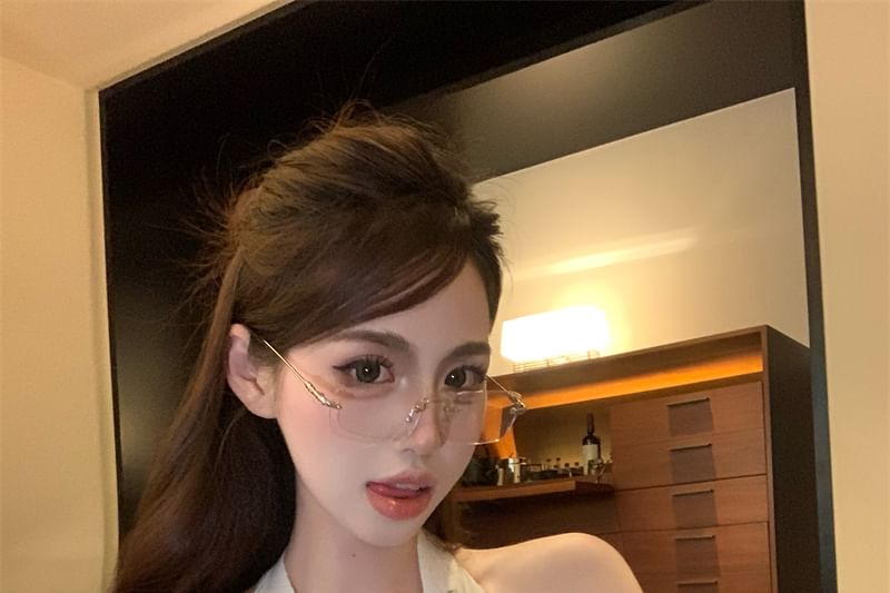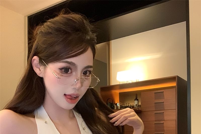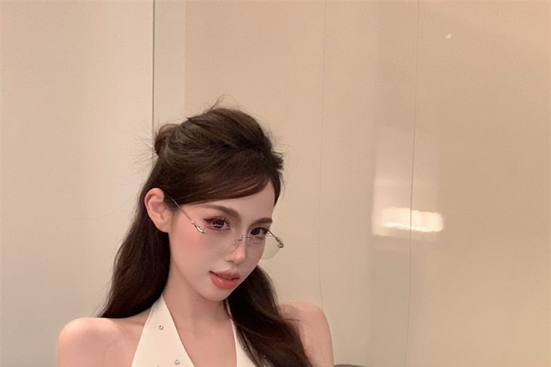 Halter V-Neck Plain Rhinestone Top