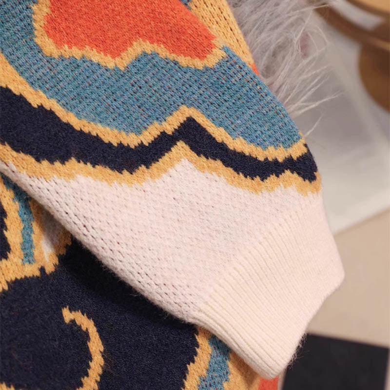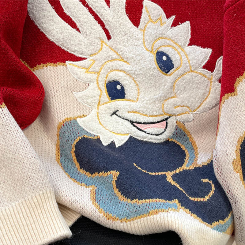 Long Sweater Lapel Red Vintage Dress Sleeve Dragon Knit
