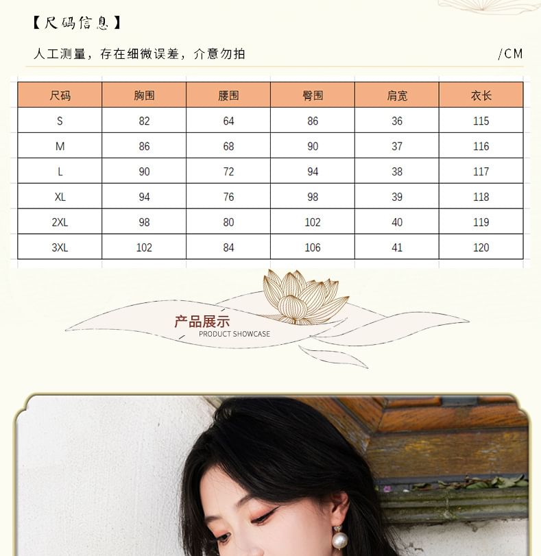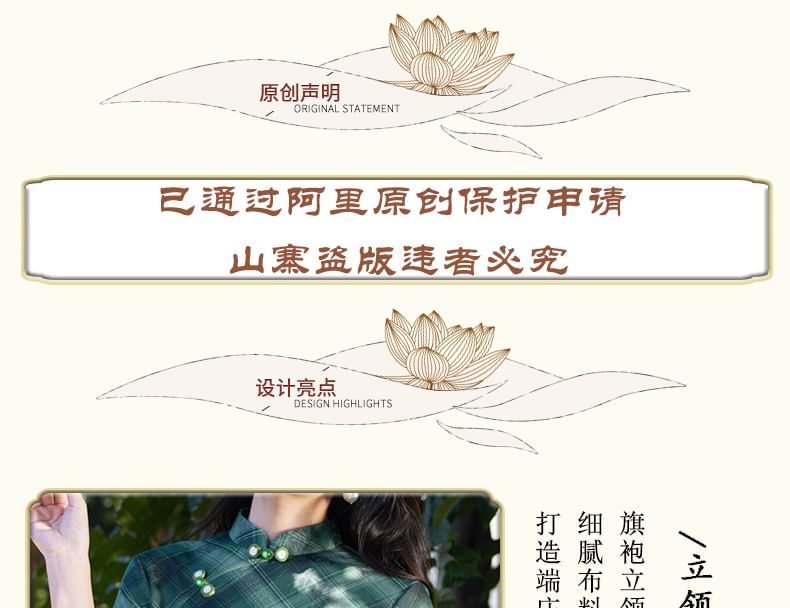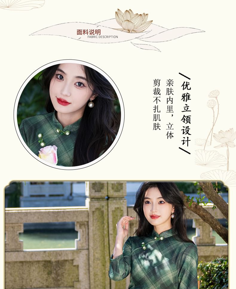 3/4 Sleeve Plaid Midi Sheath Qipao