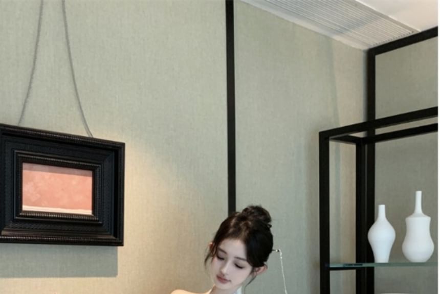 Halter Floral Lace Panel Mini Qipao