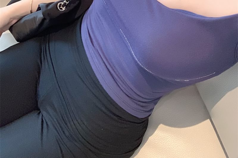 Plain Rhinestone Padded Camisole Top / Mid Rise Plain Flared Pants