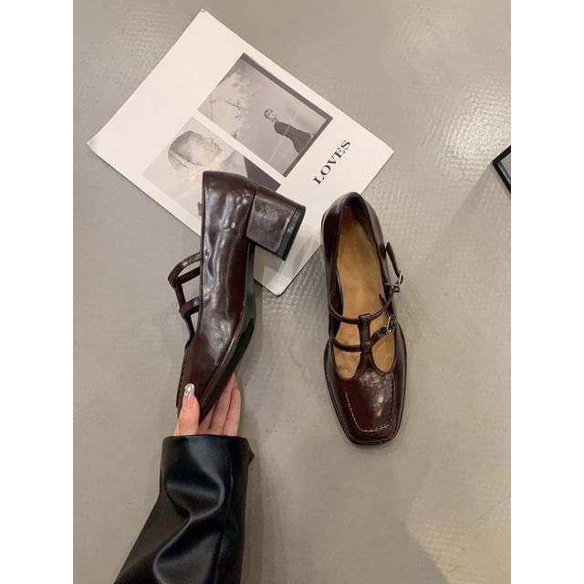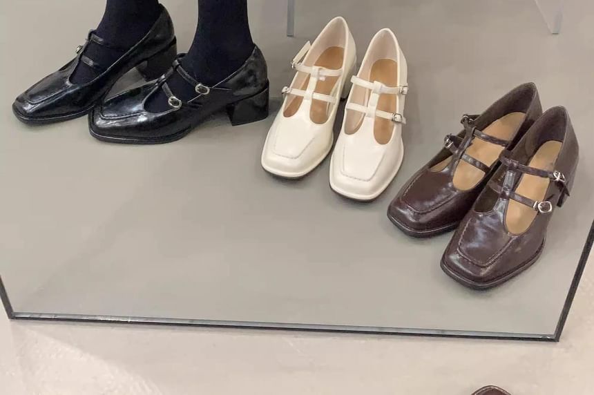 Chunky Heel Square Toe T-Strap Plain Mary Jane Pumps