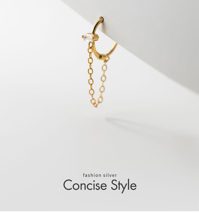 Rhinestone Chain Sterling Silver Huggie Earring