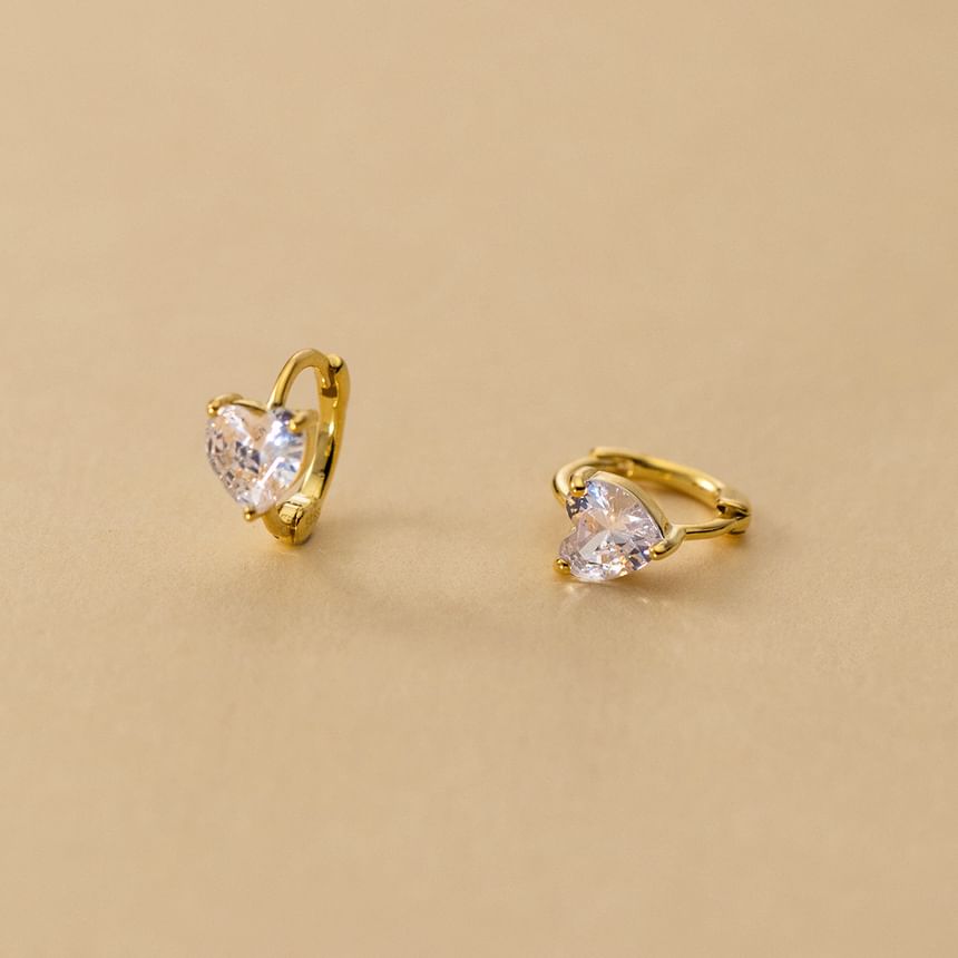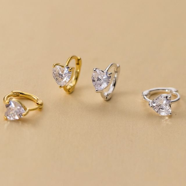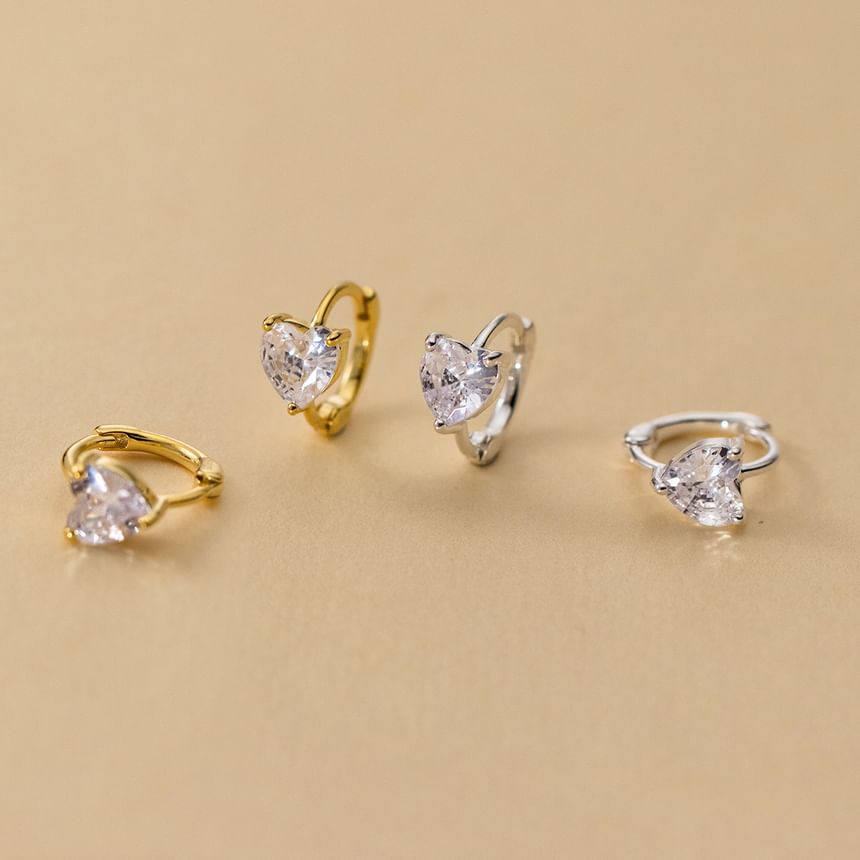 S925 Sterling Silver Heart Rhinestone Huggie Earring