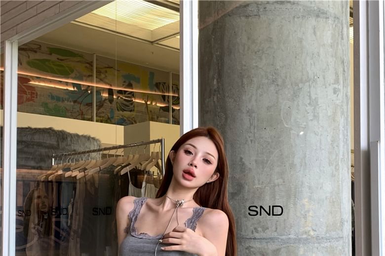 Scoop Neck Plain Lace Trim Tank Top / Mid Rise Plain Satin Undershorts / Low Rise Plain Sequin Shorts