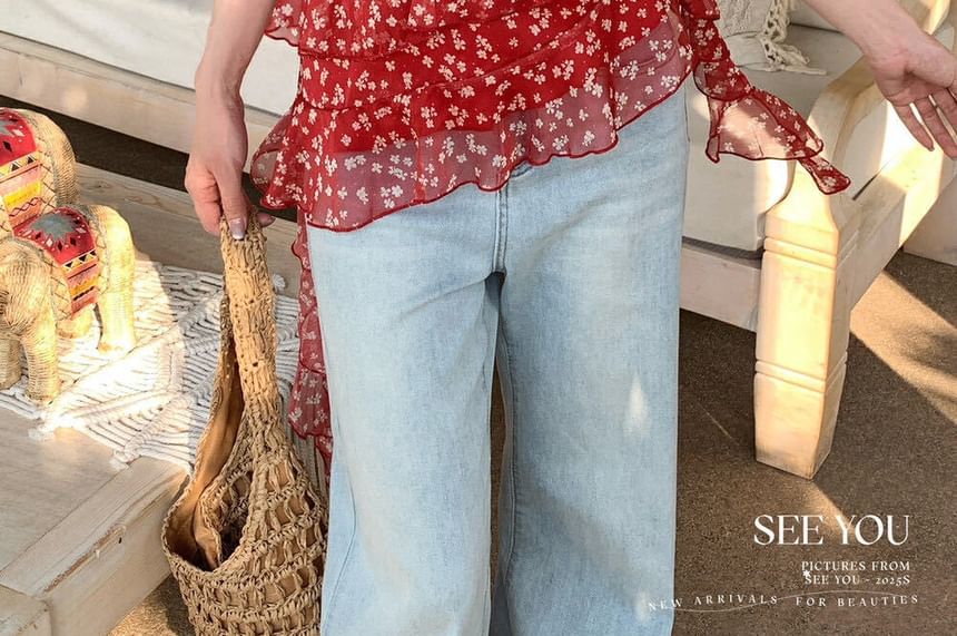 Set: Floral Asymmetrical Ruffle Trim Cami Top + Scrunchie