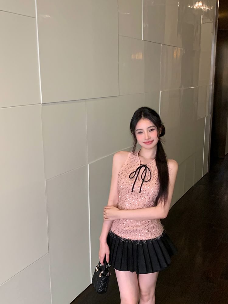 Skirt Waist Print Sweet Pleated High T-Shirt