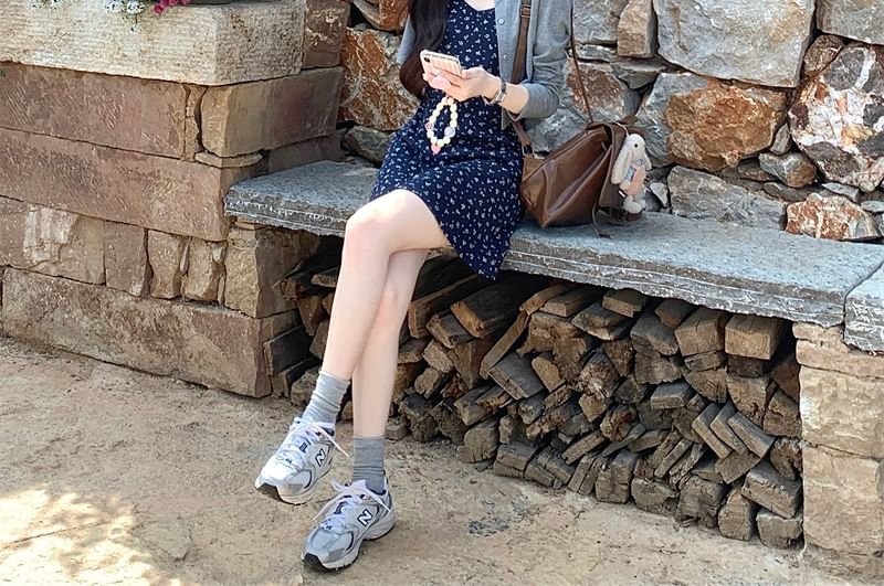 Spaghetti Strap Floral Mini A-Line Dress / Melange Crop Cardigan