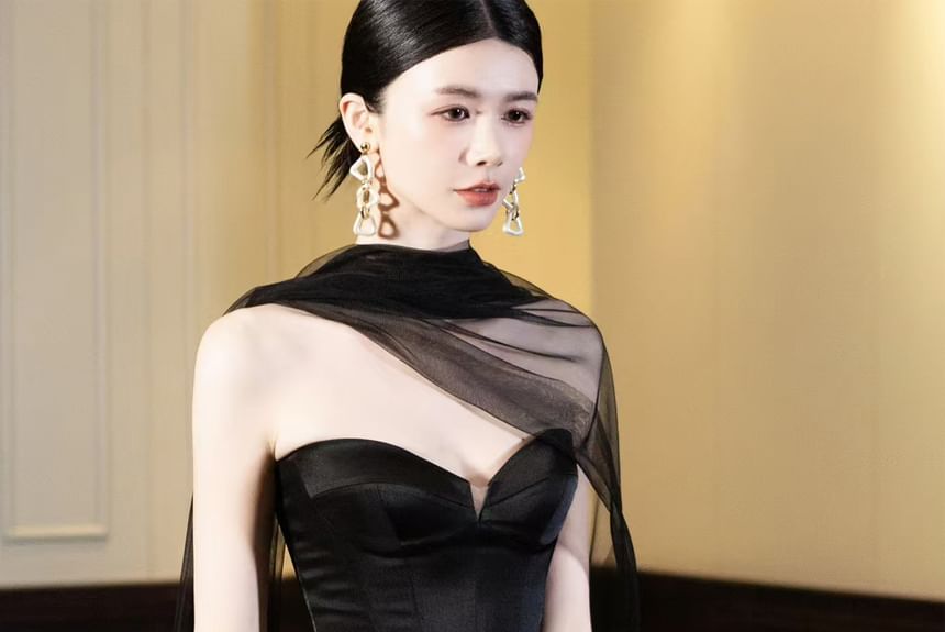 Strapless Floral Print Sheath Maxi Party Dress