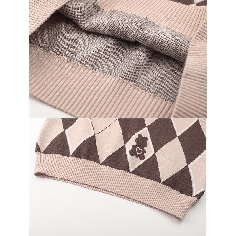 Cute Bear Print Vest Lapel Shirt High Waist Suit Pants