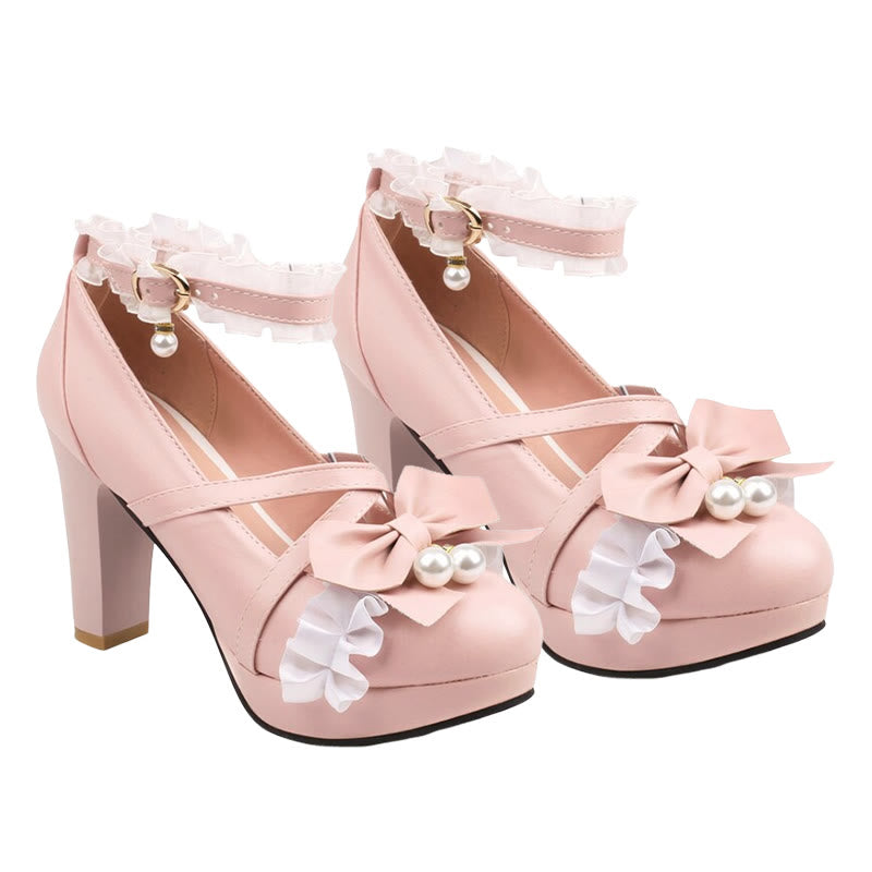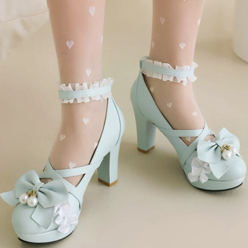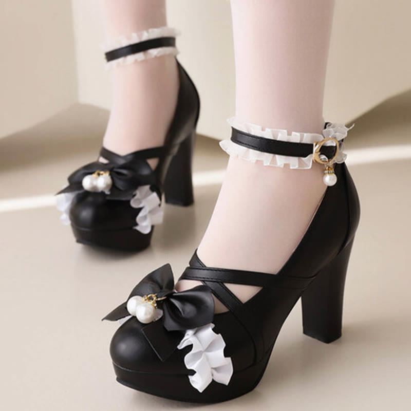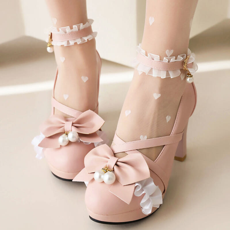 Sandales à talons épais en dentelle avec joli nœud décoratif