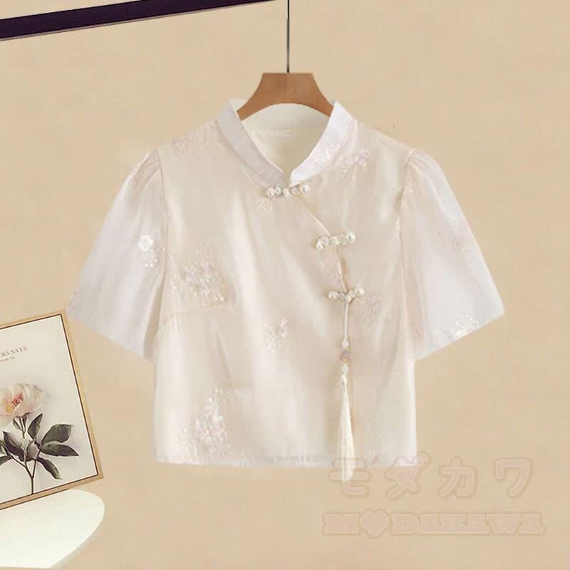 Print Skirt Embroidery Set Tassel Shirt Flower