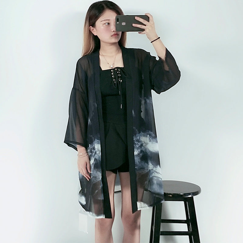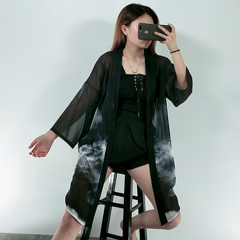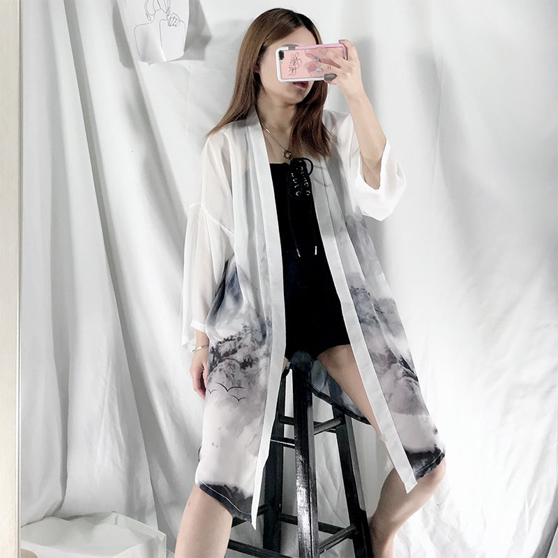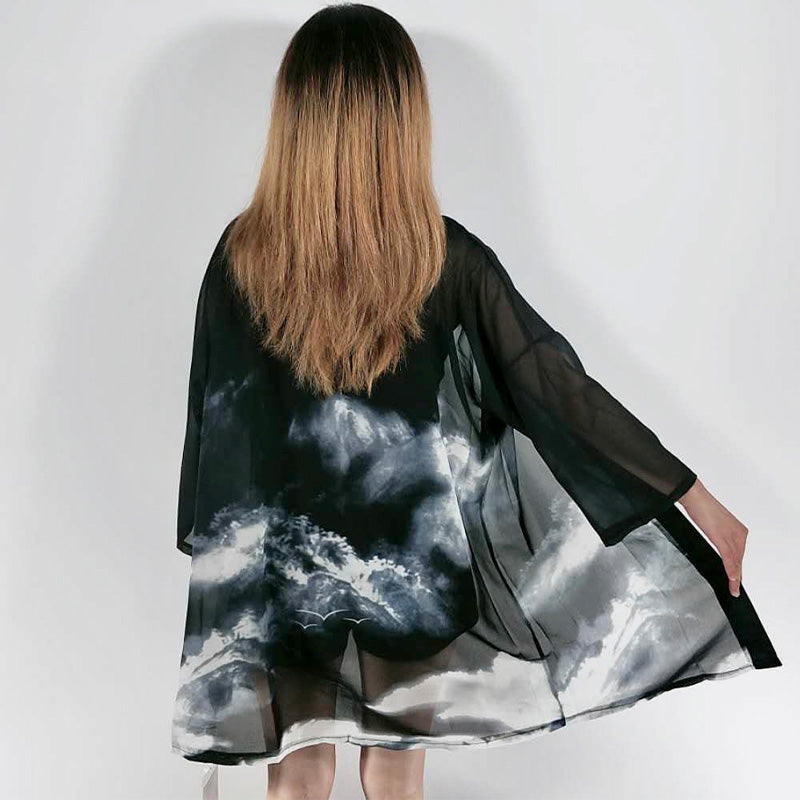 Vêtements d'extérieur kimono avec peinture à l'encre vintage