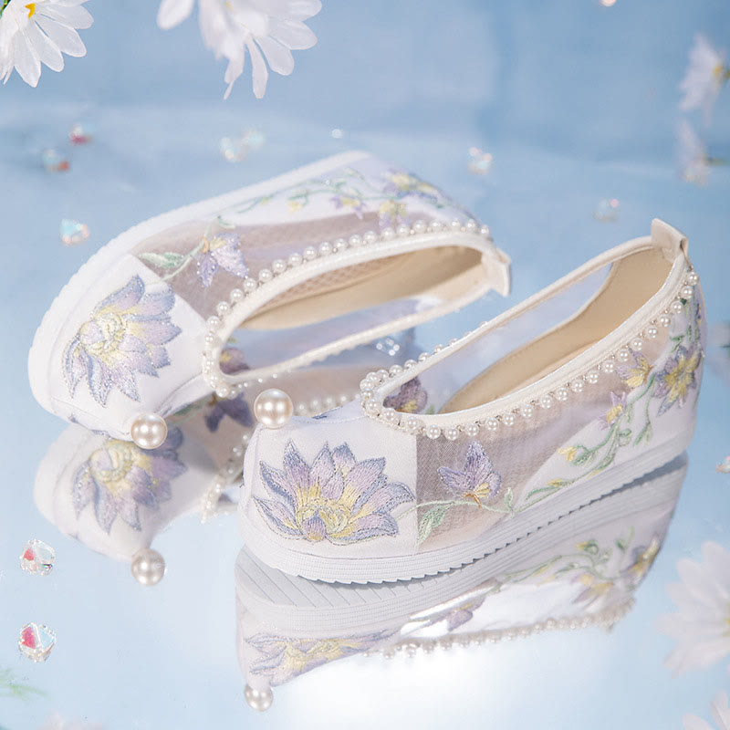 Laissez-vous tenter par l'élégance de nos chaussures en maille à broderie florale blanche et à décor de perles. Délicatement confectionnées avec une broderie florale complexe et ornées de perles, ces chaussures respirent la sophistication et la grâce. Le matériau en maille respirante assure le confort tandis que le design ajoute une touche de luxe à votre ensemble. Rehaussez votre style à chaque pas.