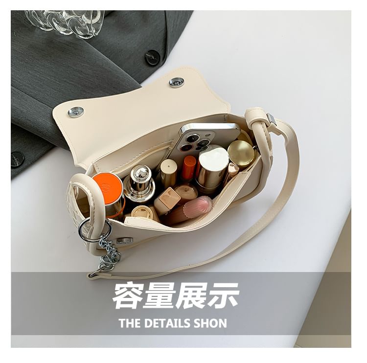 Plain Woven Faux Leather Flap Crossbody Bag