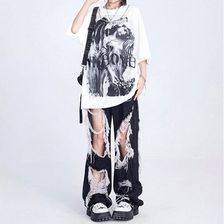 Améliorez votre style denim avec notre jean détruit Y2K. Ce jean élégant présente un design détruit d'inspiration vintage, ajoutant une touche d'audace à n'importe quelle tenue. Fabriqué en denim de haute qualité, il offre à la fois durabilité et confort. Rehaussez votre garde-robe et faites sensation avec notre jean détruit Y2K.