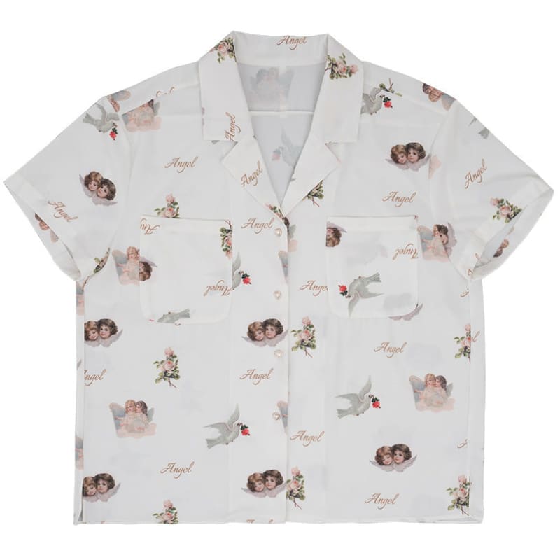 This adorable kawaii Angel Short Shirt is the perfect addition to any wardrobe. Made with high-quality materials, this shirt features an angelic design that will make you feel positively angelic yourself. Spread your wings and showcase your sweet style with this Angel Short Shirt.