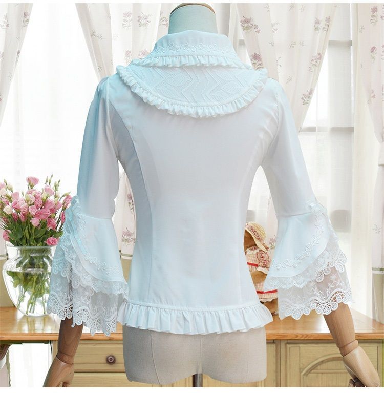 Lolita Bell-Sleeve Collared Lace Trim Blouse