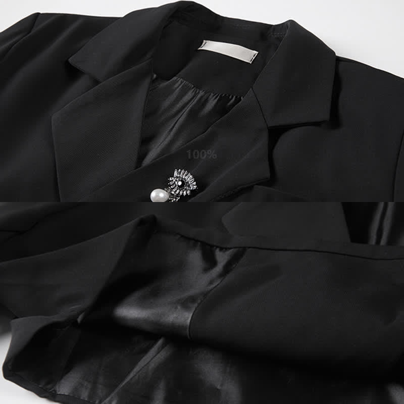 Black Chain Decor Short Blazer Lace Up Irregular Slip Dress Set