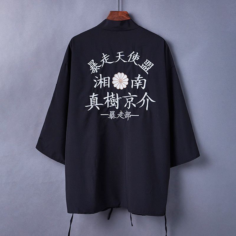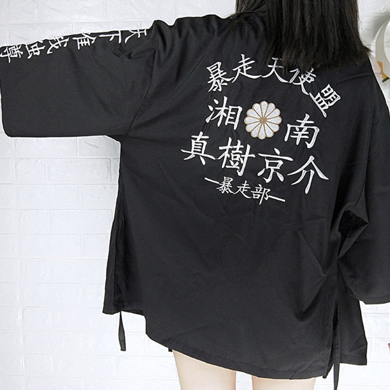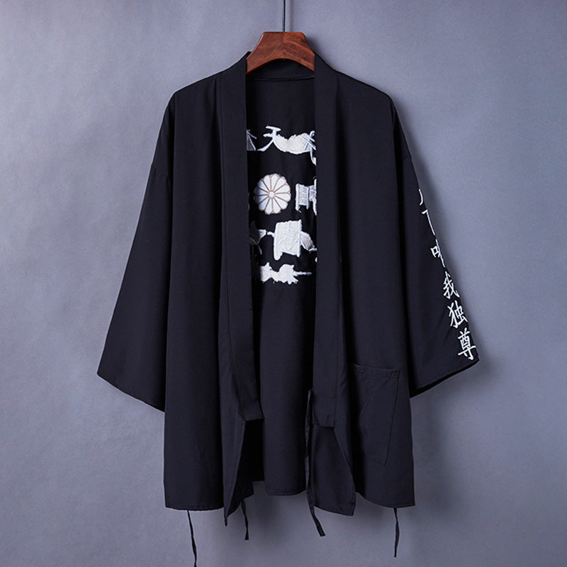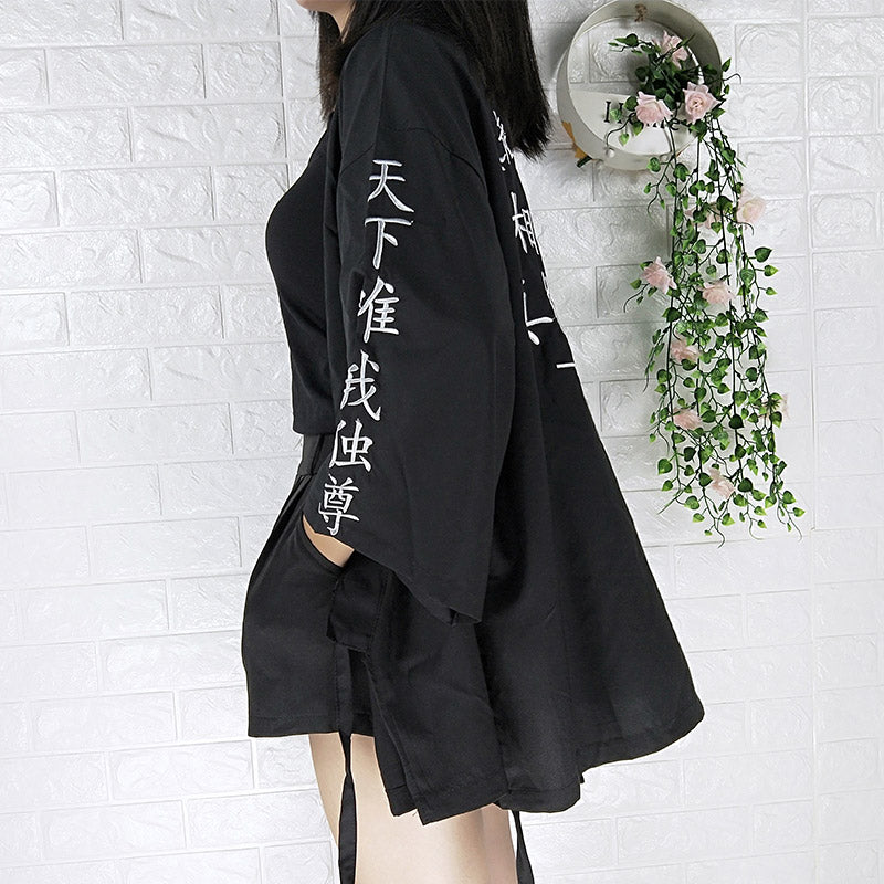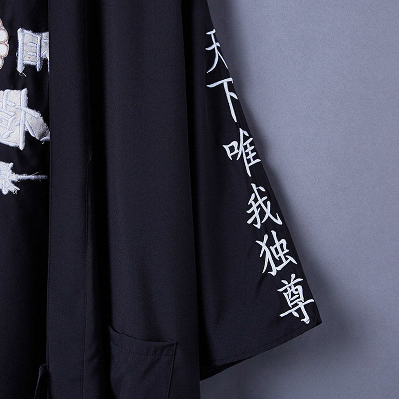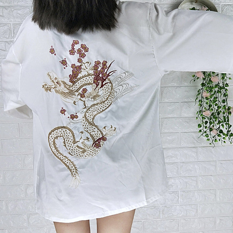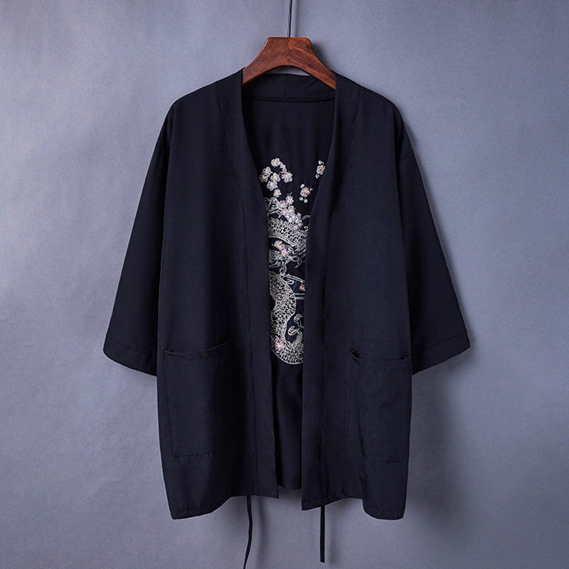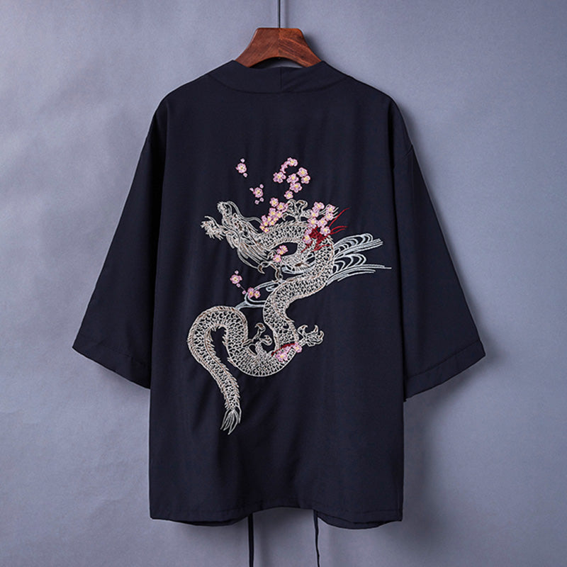 Black Dragon Chinese Embroidery Kimono Outerwear Sun Protective