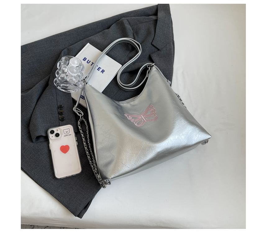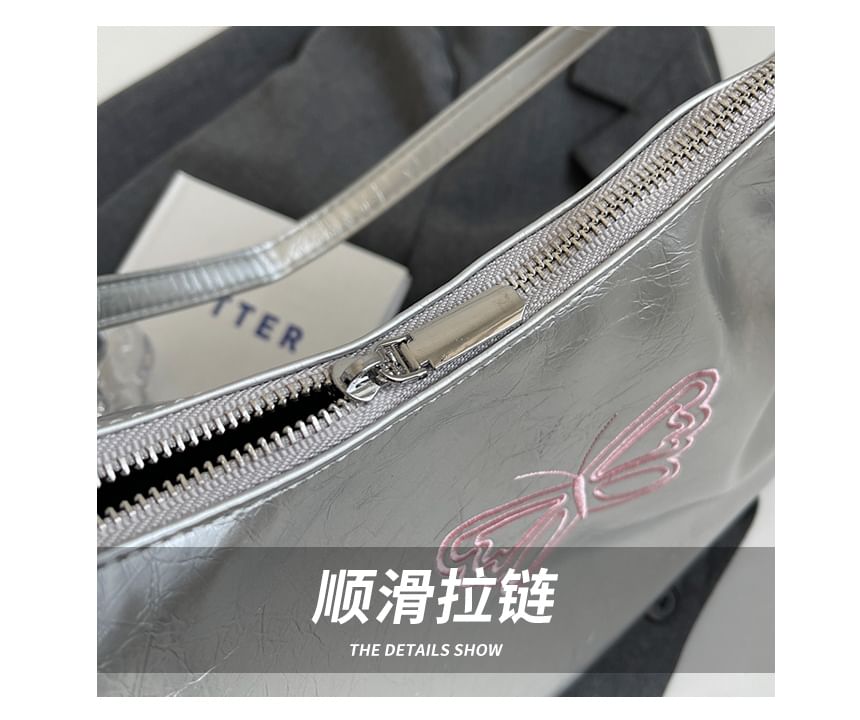 Butterfly Embroidered Faux Leather Crossbody Bag