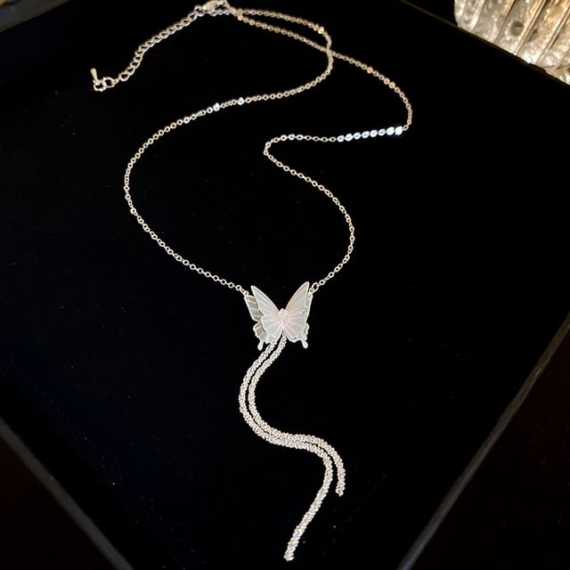 Butterfly Rhinestone Alloy Choker / Dangle Earring