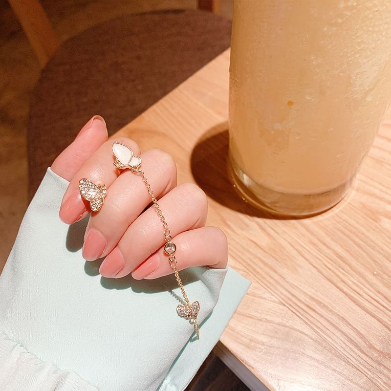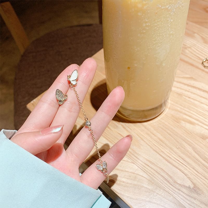 Butterfly Rhinestone Asymmetrical Alloy Dangle Earring