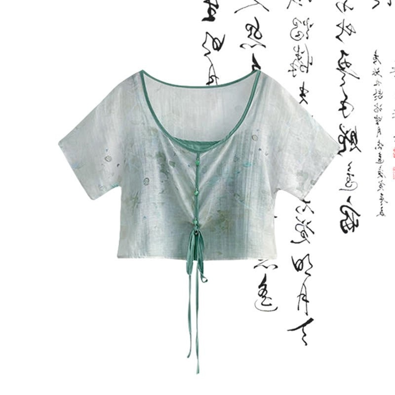 Cami Top Cardigan Wide Lace-up Vintage Leg Pants