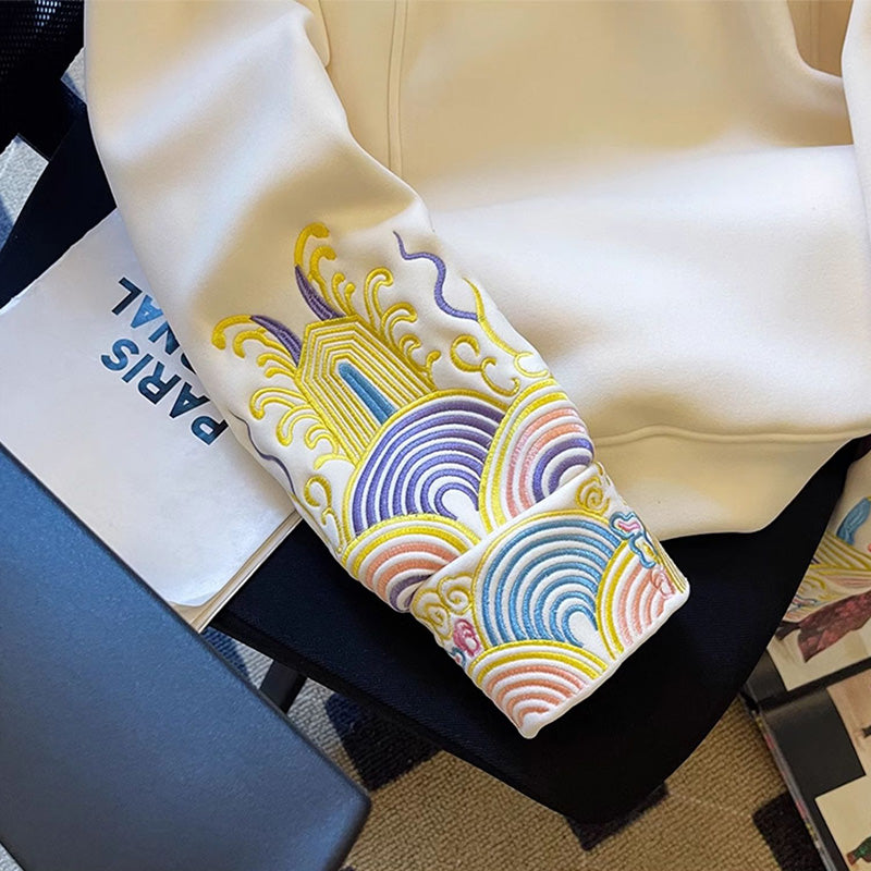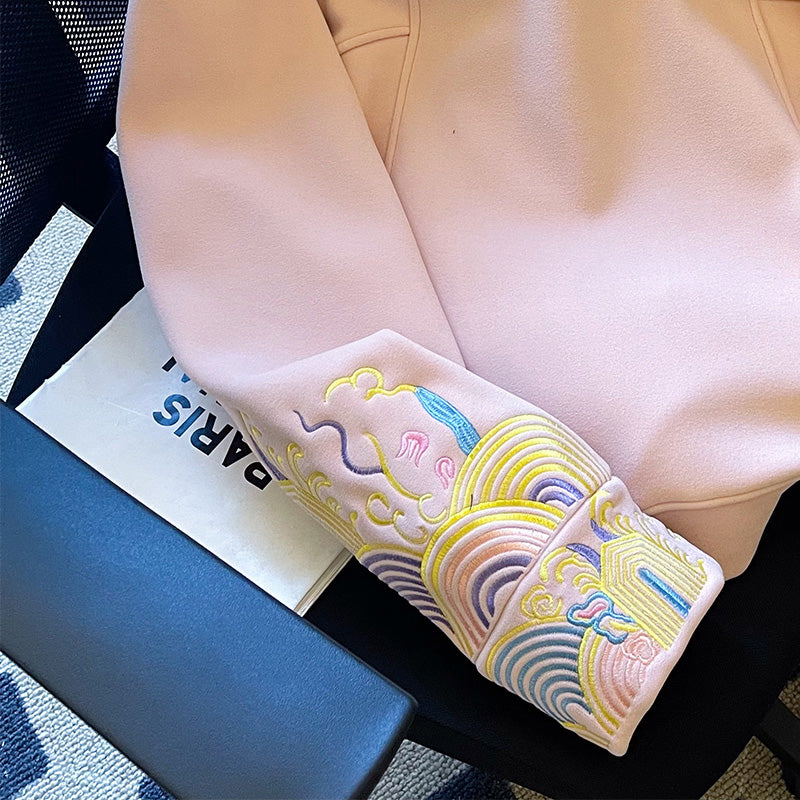 Casual Floral Embroidery Plush Loose Hoodie