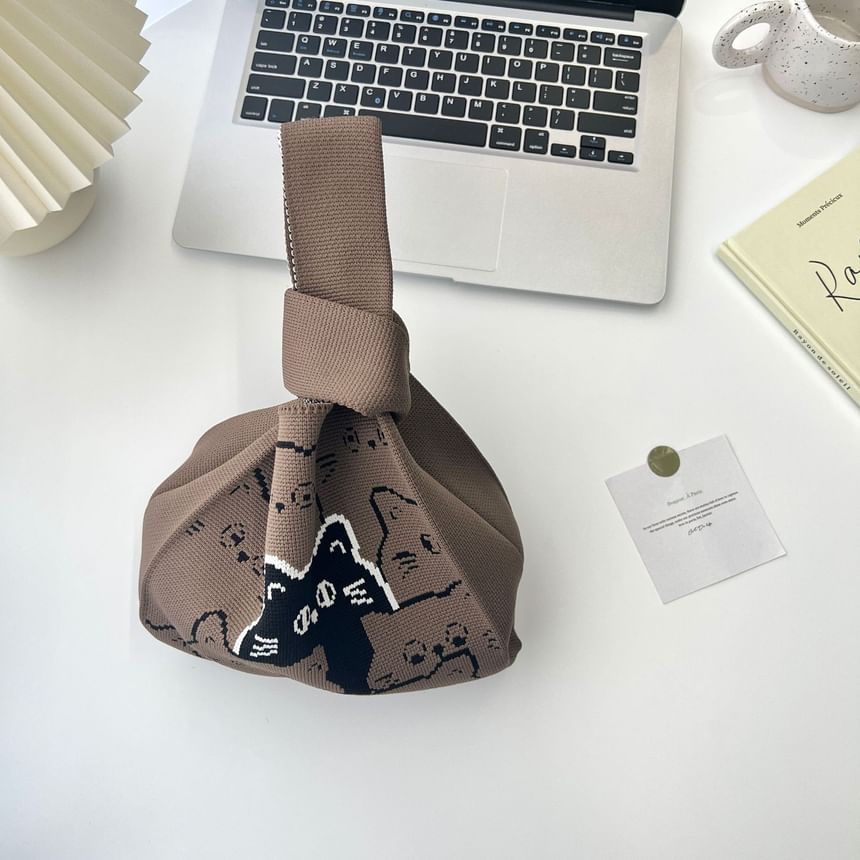 Cat Print Knit Tote Bag