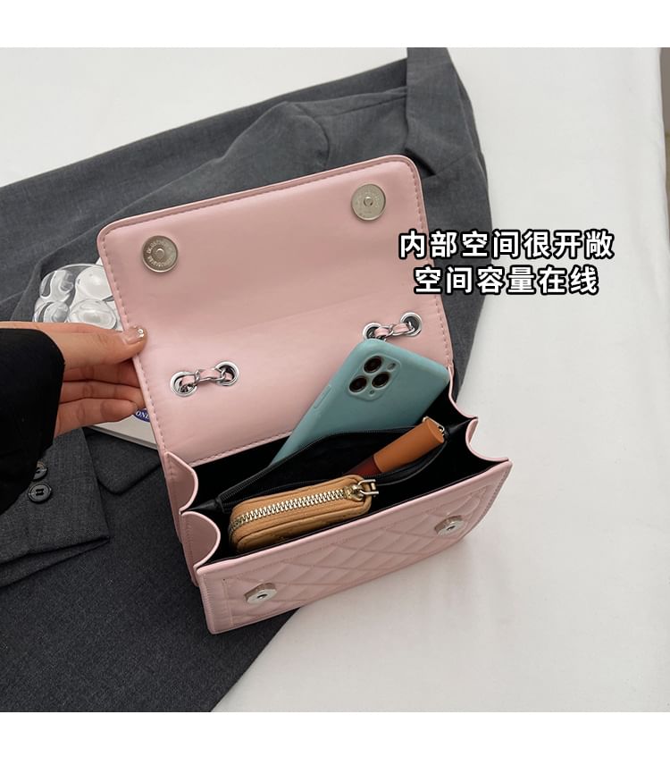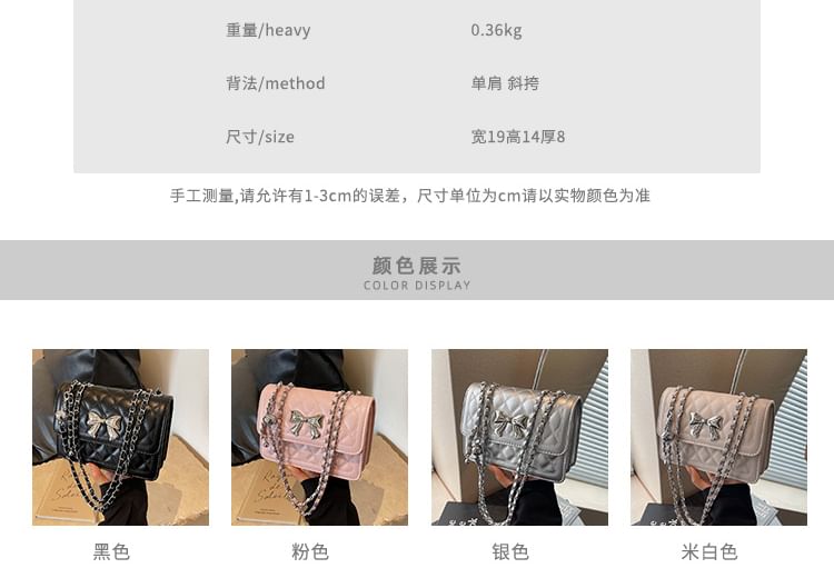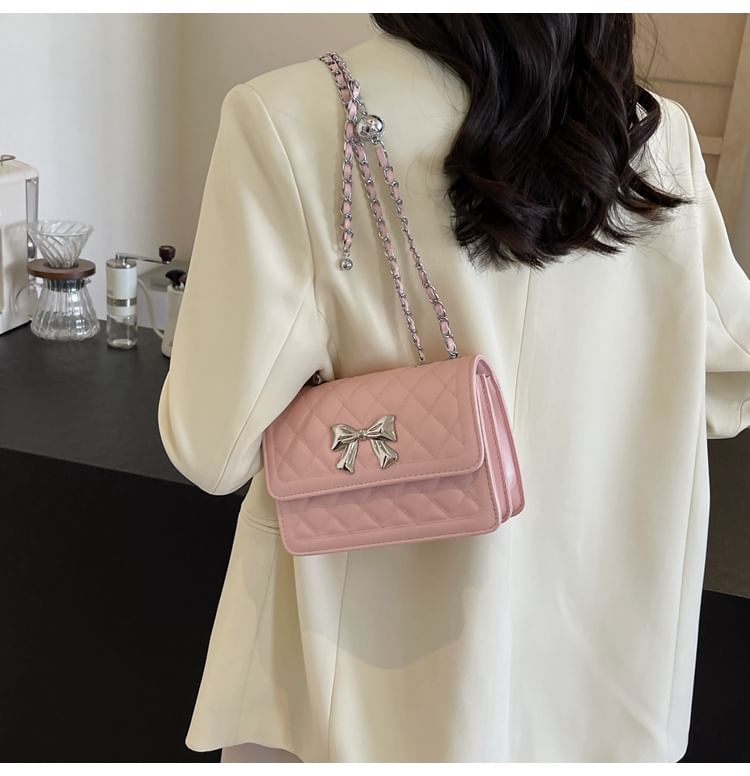 Chain Strap Bow Accent Quilted Faux Leather Flap Crossbody Bag