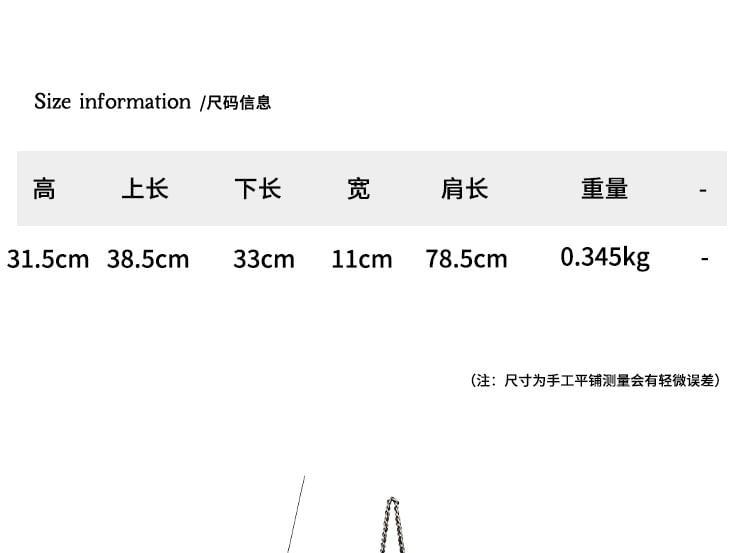 | Height | Upper Length | Bottom Length | Width | Strap Length |