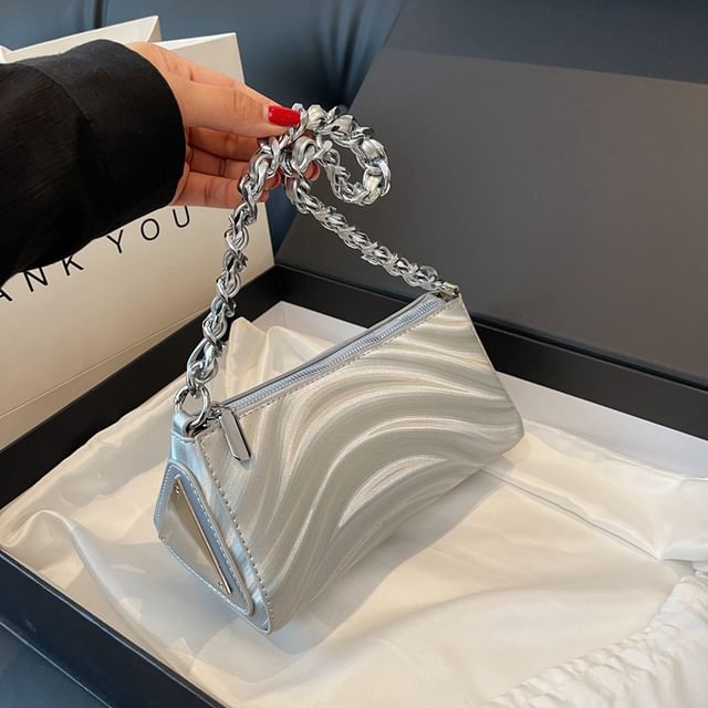 Chain Strap Triangle Faux Leather Crossbody Bag