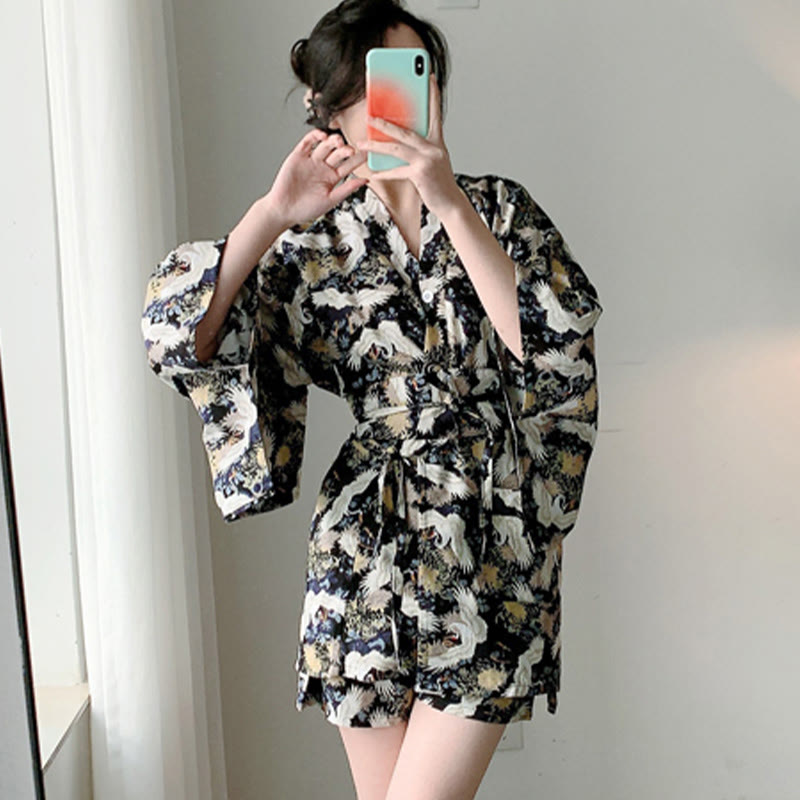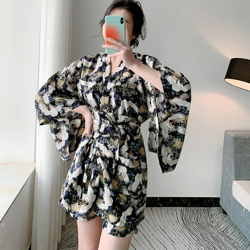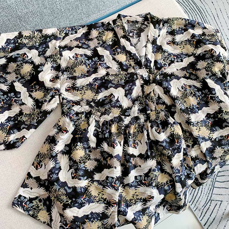 Add a touch of elegance to your sleepwear with our Chic Cotton Crane Print Pajamas. Made with soft cotton and featuring a stunning crane print, these pajamas are not only fashionable but comfortable as well. Elevate your bedtime routine with these luxurious pajamas.