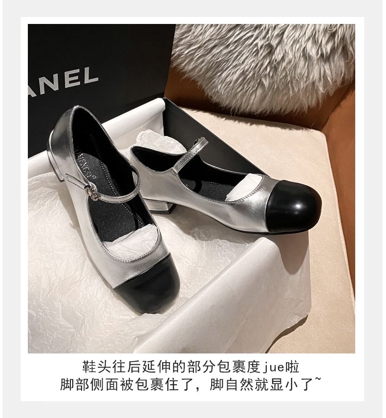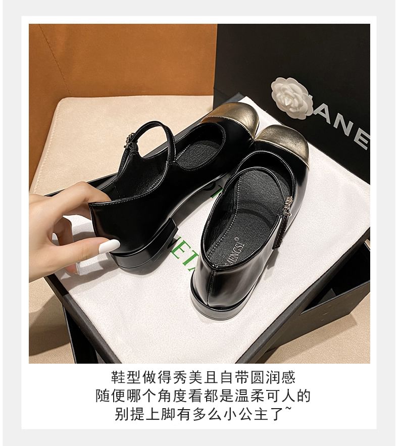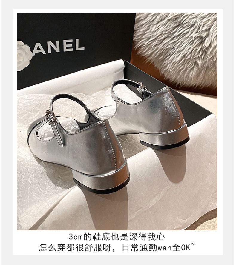 Chunky Heel Cap Toe Rhinestone Buckled Faux Leather Mary Jane Shoes