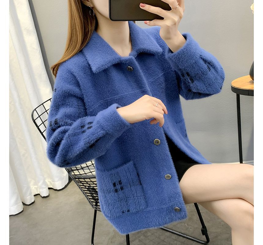 Collared Plaid Fluffy Button Jacket