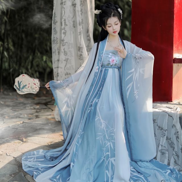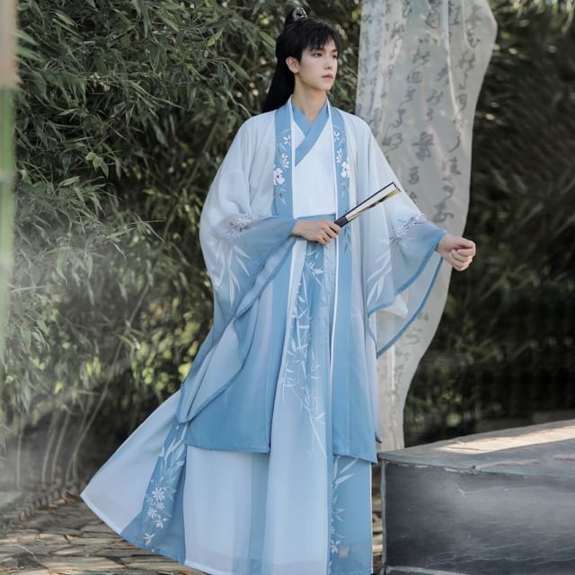 Sleeve Traditional Flower Shirt Long Print Skirt