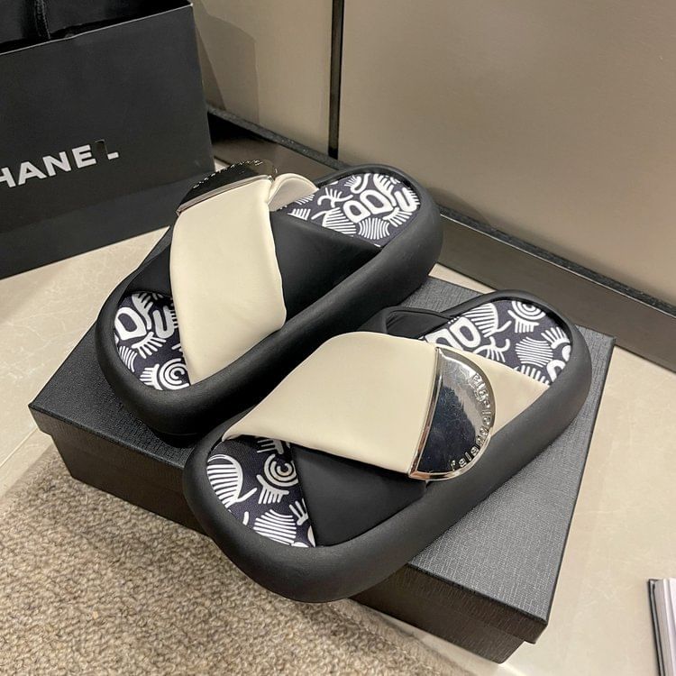 Cross Tone Strap Platform Two Faux Sandals Leather