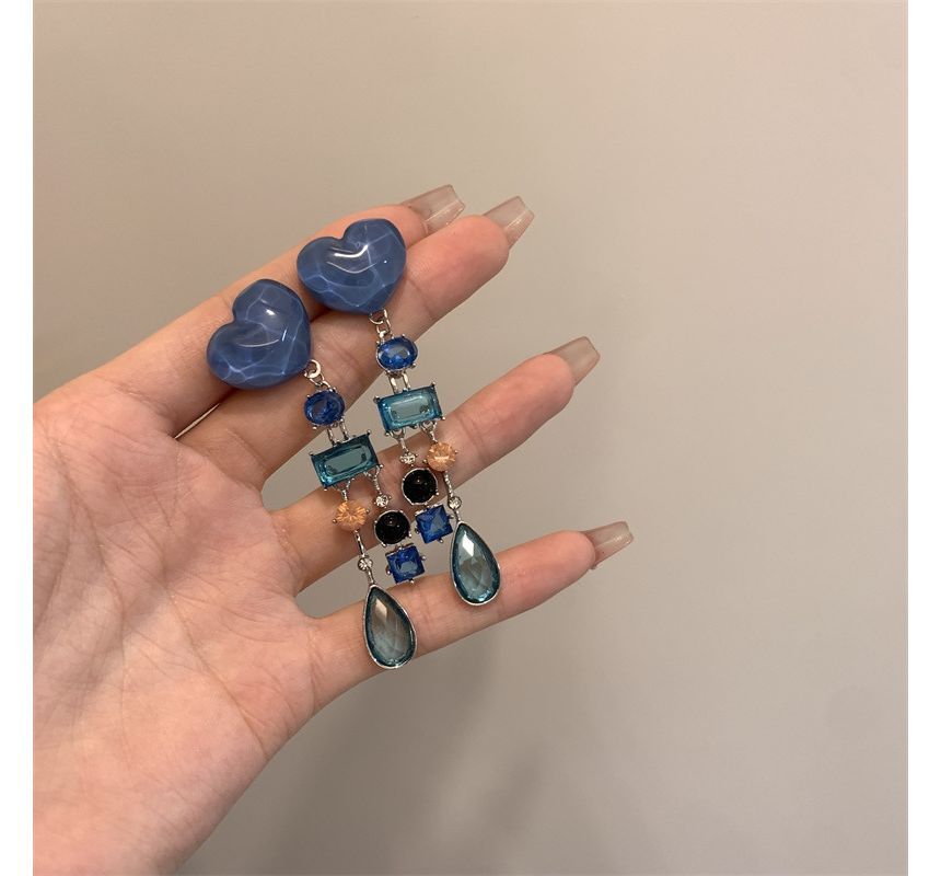 Heart Rhinestone Alloy Fringed Earring