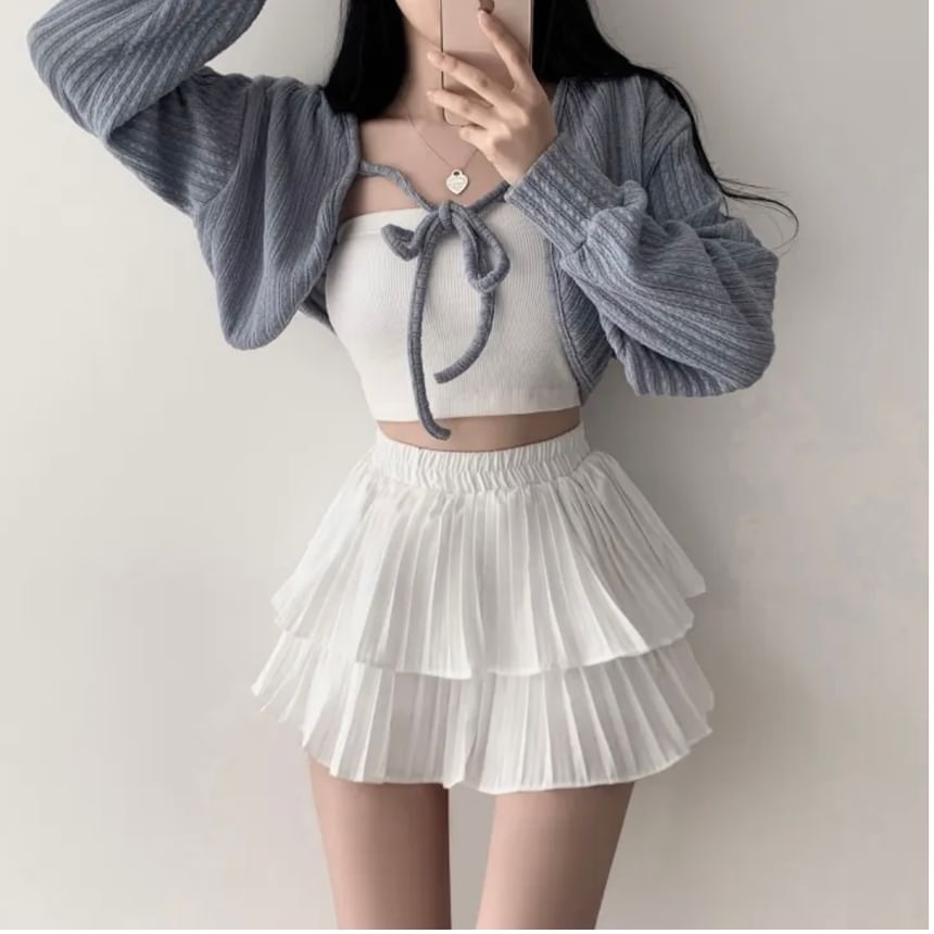 Skirt Waist Print Sweet Pleated High T-Shirt