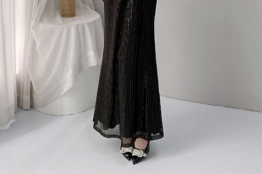 Elbow-Sleeve Sequined Caped Mermaid Evening Gown